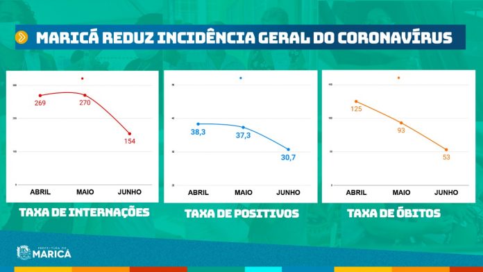Maricá já tem 100% dos grupos prioritários e 60 mil dos seus 168 mil habitantes já com a primeira dose da vacina, o que representa 40% da população. Esse avanço é refletido em um indicador usado pela Saúde, a taxa de positividade de novos casos de Covid-19, que estava em 38,3% em abril, caiu para 37,3% em maio e deu um salto para baixo, proporcional à aceleração da vacinação, em junho, caindo para 30,7%.